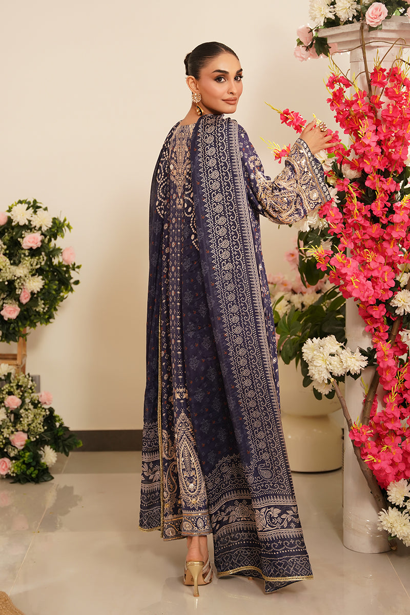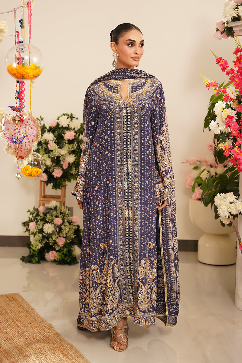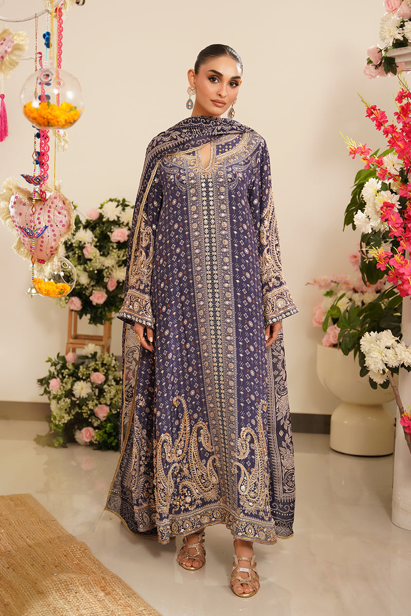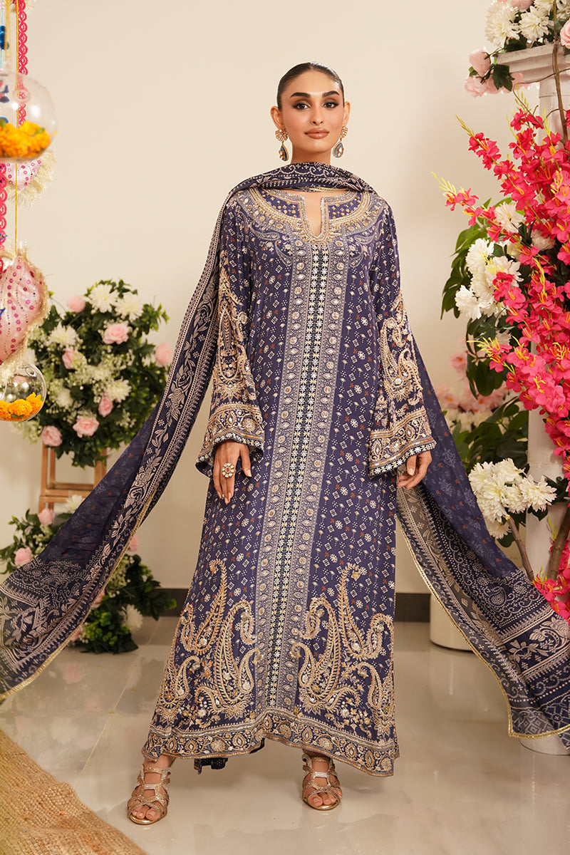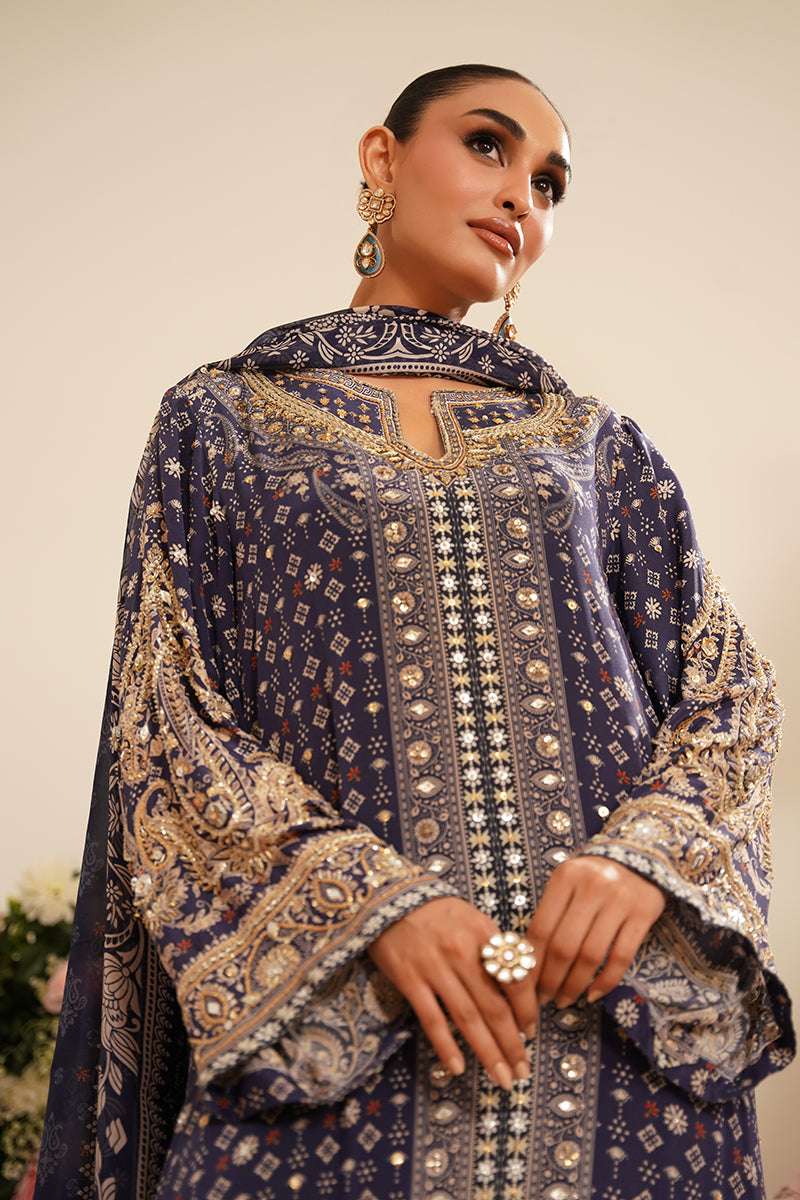 Make a sophisticated statement in this blue printed crepe shirt, featuring timeless paisley motifs and adorned with heavy hand embellishments that add depth, texture, and a touch of festive sparkle. The fluid drape of crepe complements the intricate detailing, creating a refined silhouette perfect for both day and evening wear.