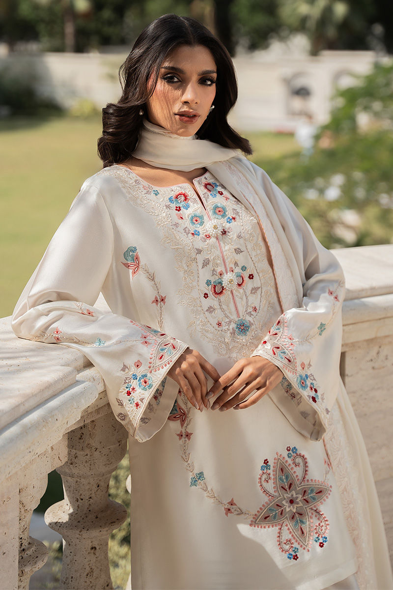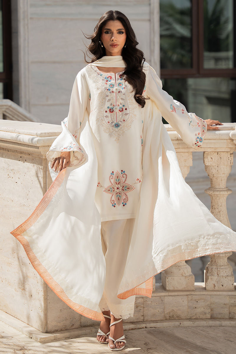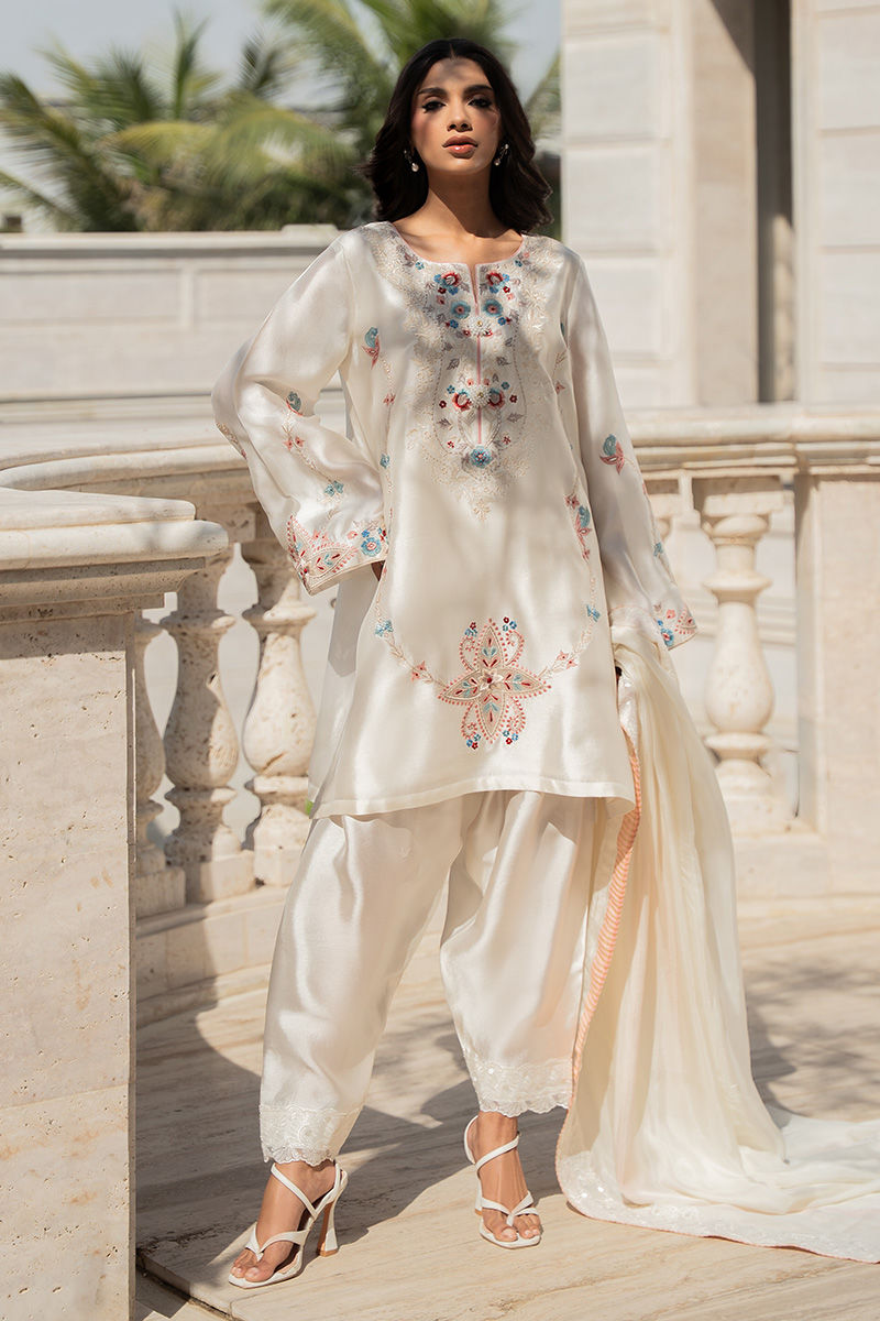 Color: Ivory Fabric: Shirt and Shalwar: Sheesha Silk, Dupatta: Silk Work Details: Embellished