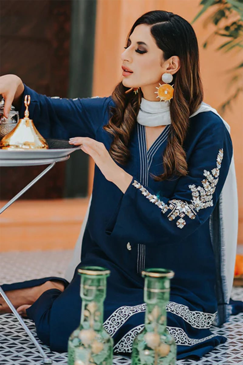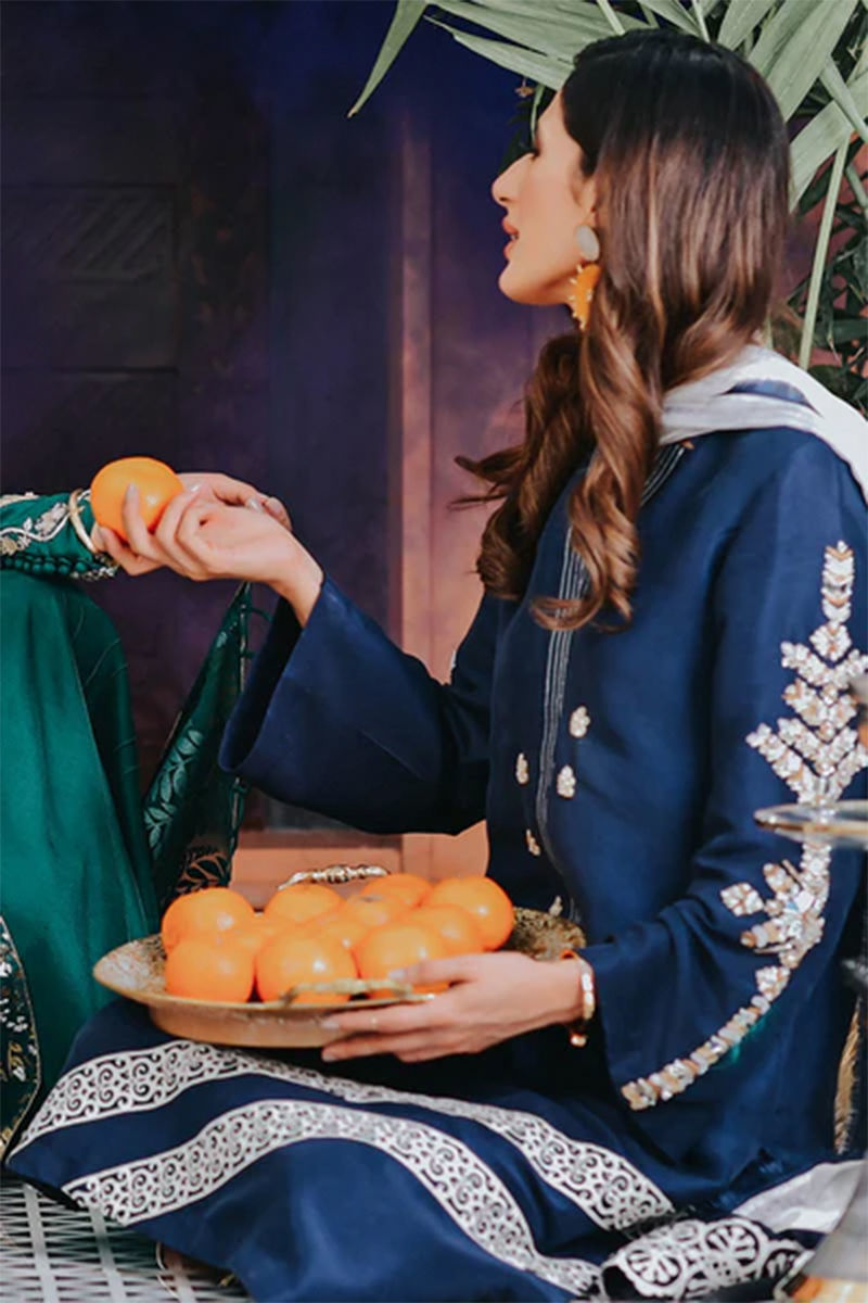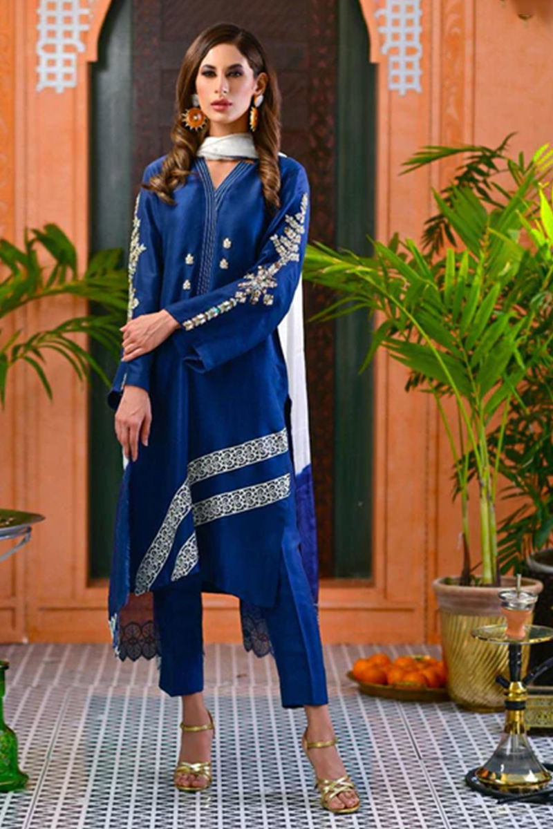 Make a statement in this pure Raw Silk shirt with fully handwork sleeves with zardozi and mirror work, threadwork craft on the neckline along laser cut appliqued on daaman. This outfit comes with pure Raw Silk pants and shaded tissue silk dupatta with intricate finishing.Shirt: Raw SilkDupatta: Raw SilkPant: Raw Silk