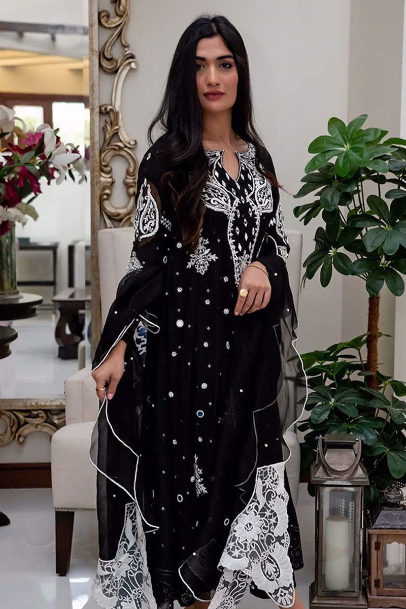 Beautifully embroidered and handcrafted kalidar in cotton net with mirror work and handwork details. It has our signature back. It is paired with a scalloped organza dupatta with hand work spray and lace detailing and statement pants. Perfect for an intimate wedding or any festive occasion.Shirt: Cotton NetDupatta: Cotton Net