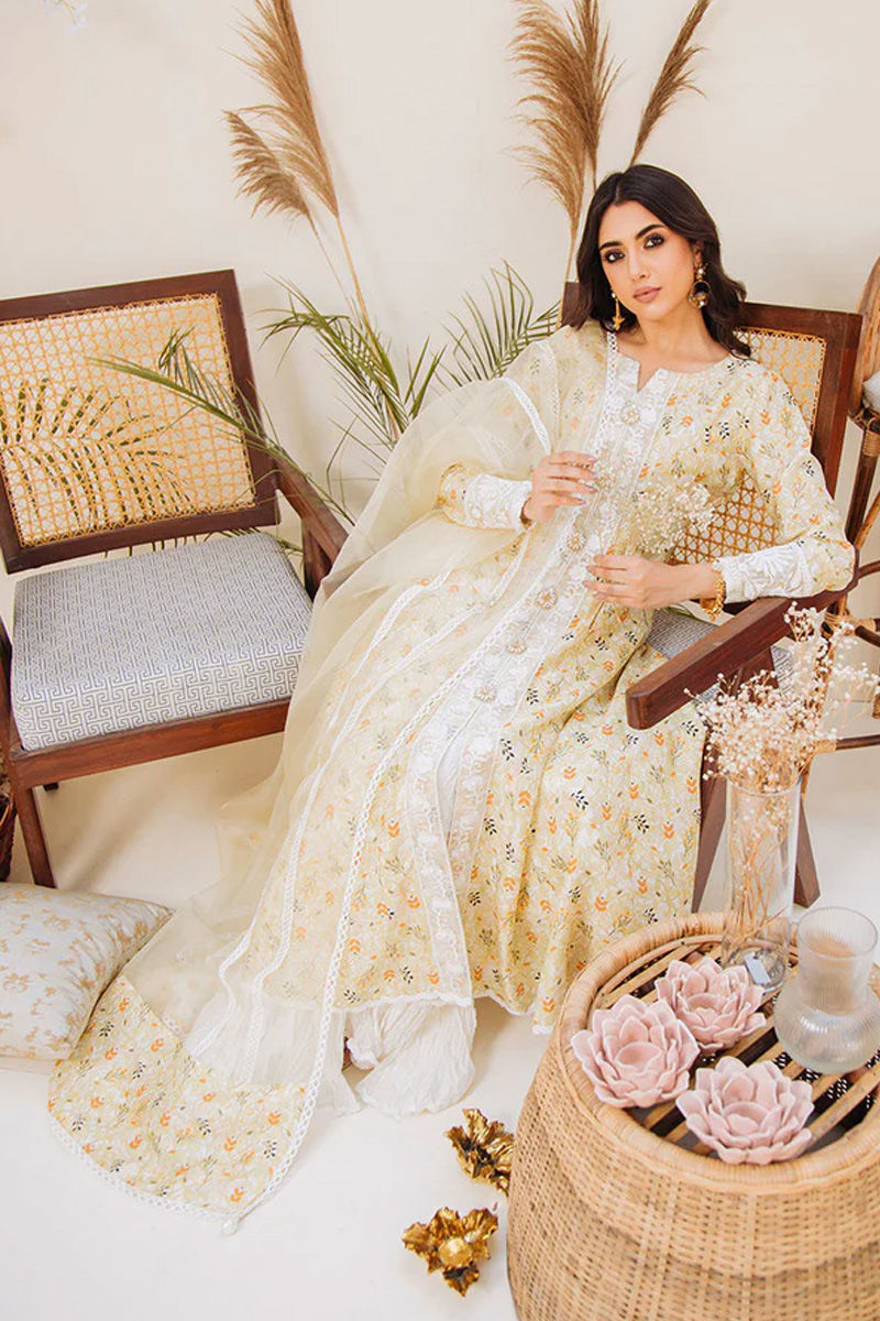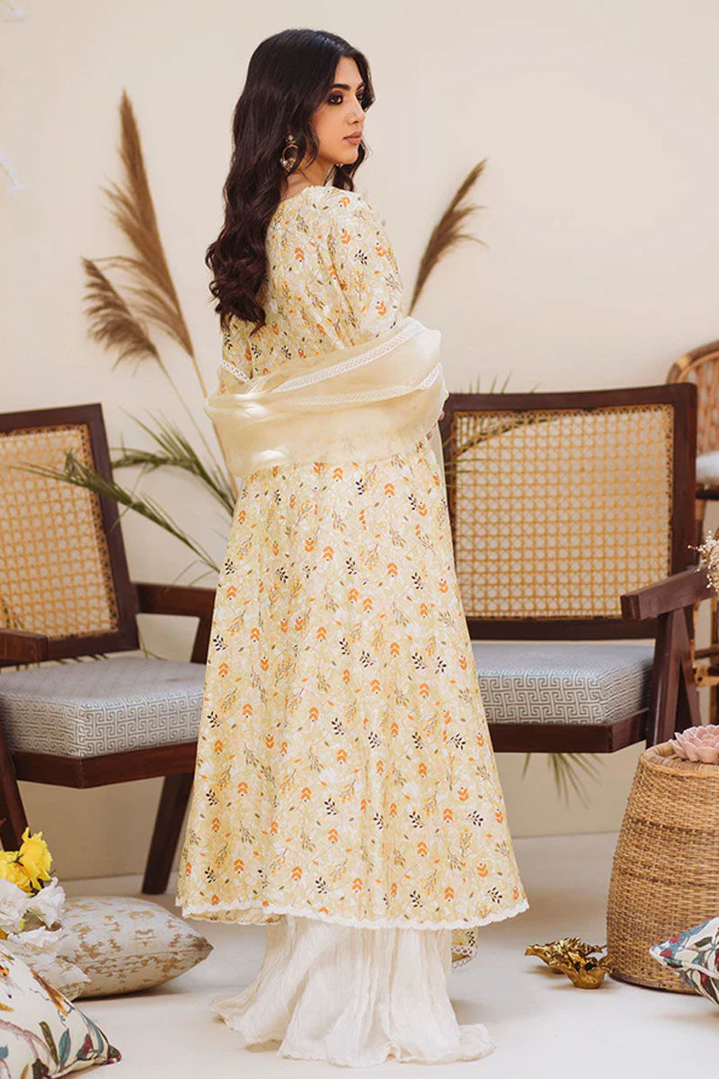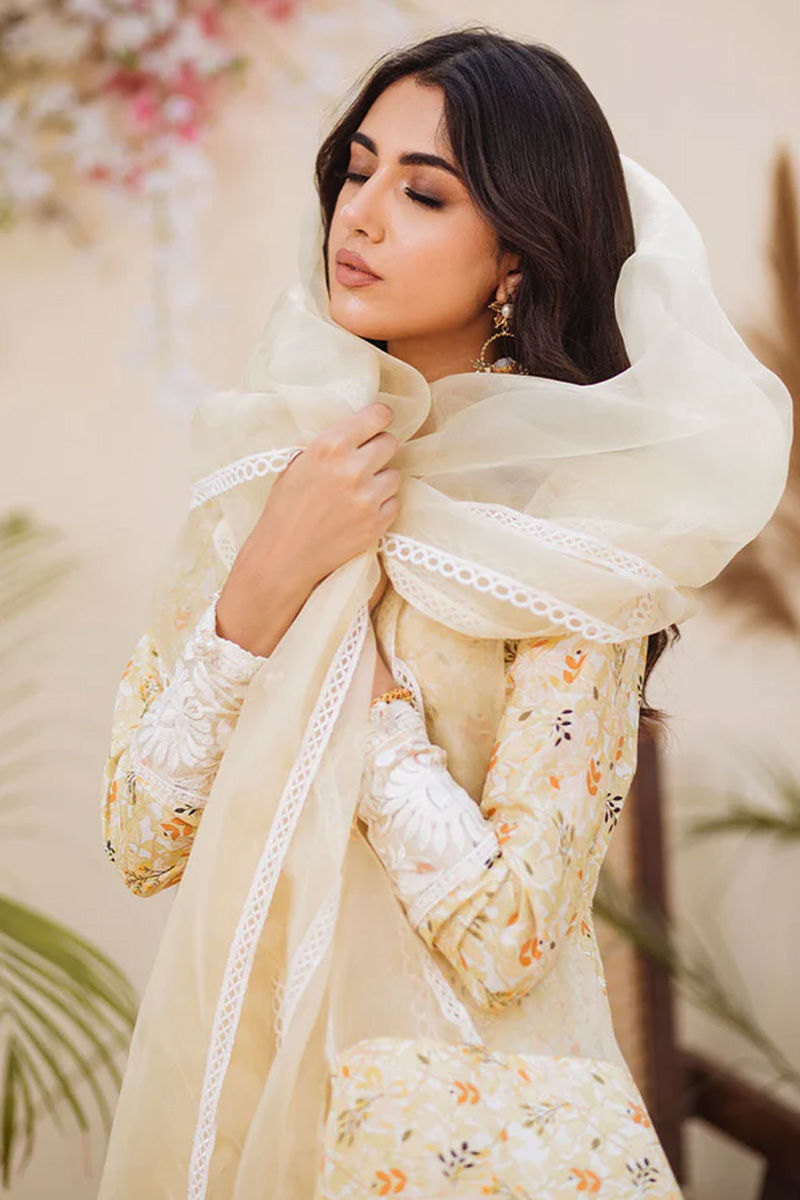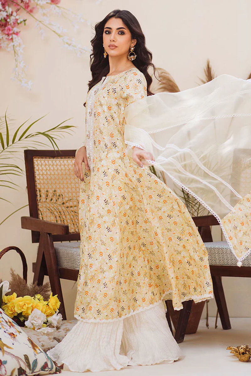 Our curated pure raw silk yellow printed front open shirt with our in-house embroidery appliquéd with impactful handmade buttons and dainty tassel details on the sleeves hem. Dupatta is on organza with print on pallu and finished off with laces. Pair it with the crushed silk Dhaka pants to complete the whole look. This silhouette calls for all summer and Eid soirées.Shirt: RawsilkDupatta: Rawsilk