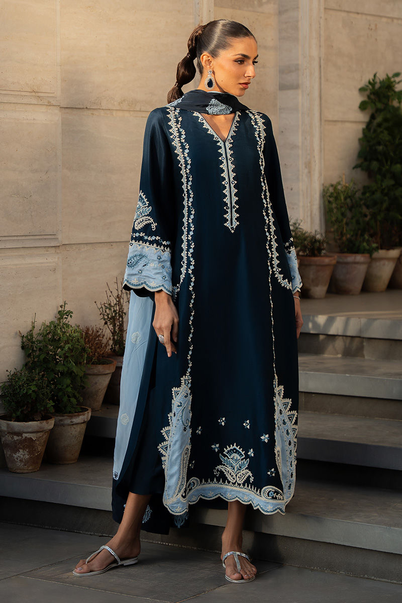Color: Blue Fabric: Shirt and Pant: Pure Raw Silk, Dupatta Crepe Silk Work Details: Embellished