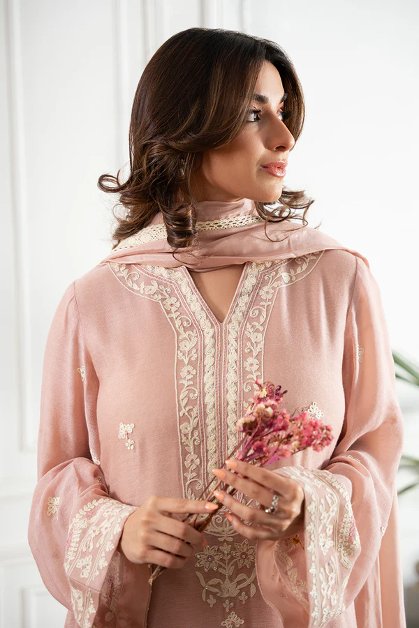 Color: Pink Fabric: Cotton net Work Details: Embroidered
