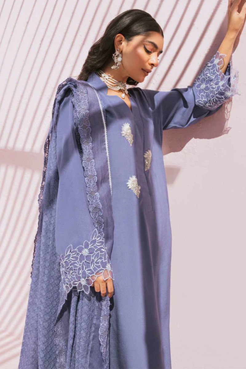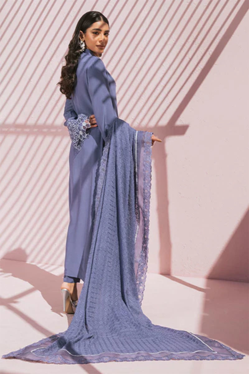 A must-have colour for this season. A universally Flattering silhouette shirt with hand-worked motifs on the neckline and cutwork floral details on sleeves. Dupatta is an amalgamation of schiffli, organza, gota and laces. Minimalism at its best!*schiffli pattern of dupatta might differShirt: Pure CrepePant: Pure Crepe