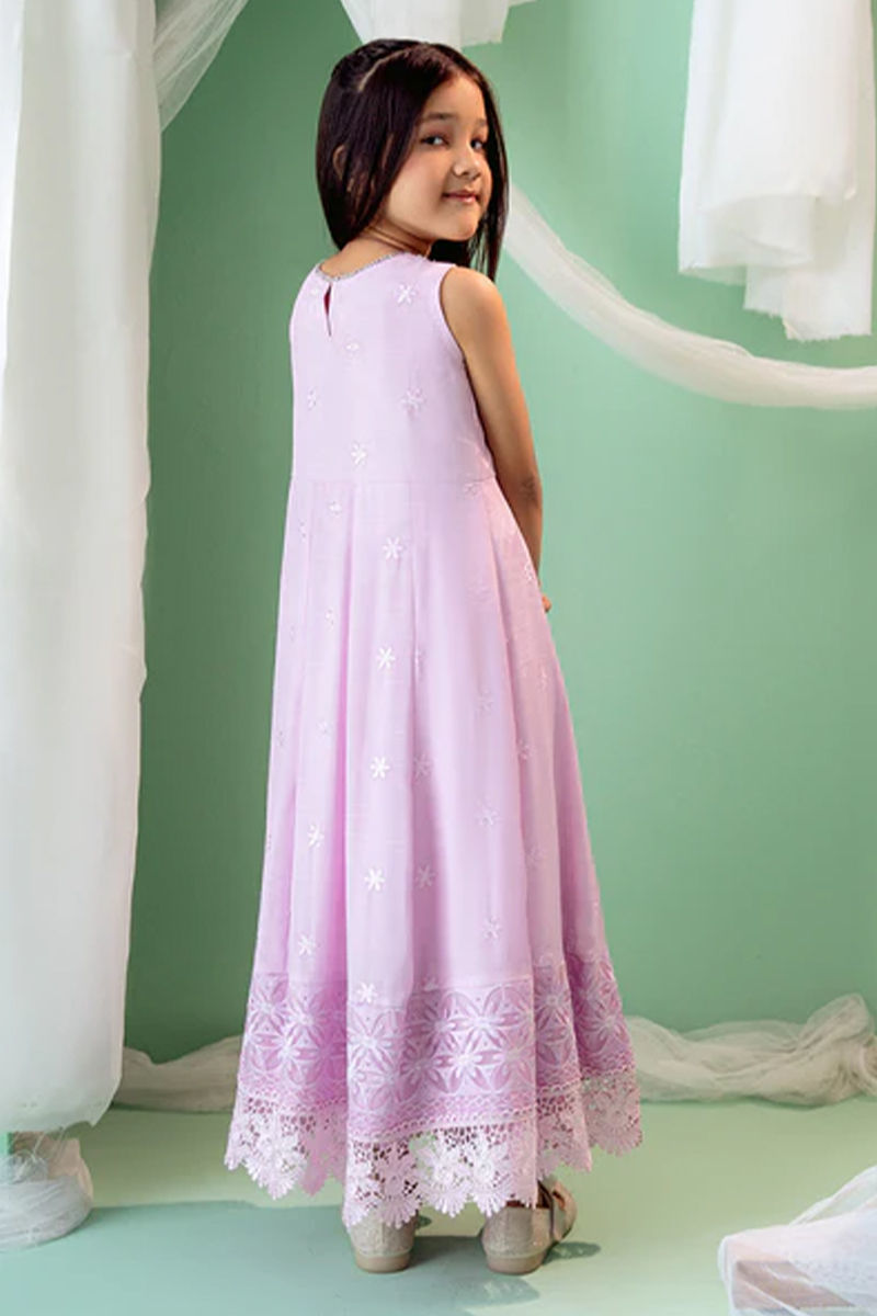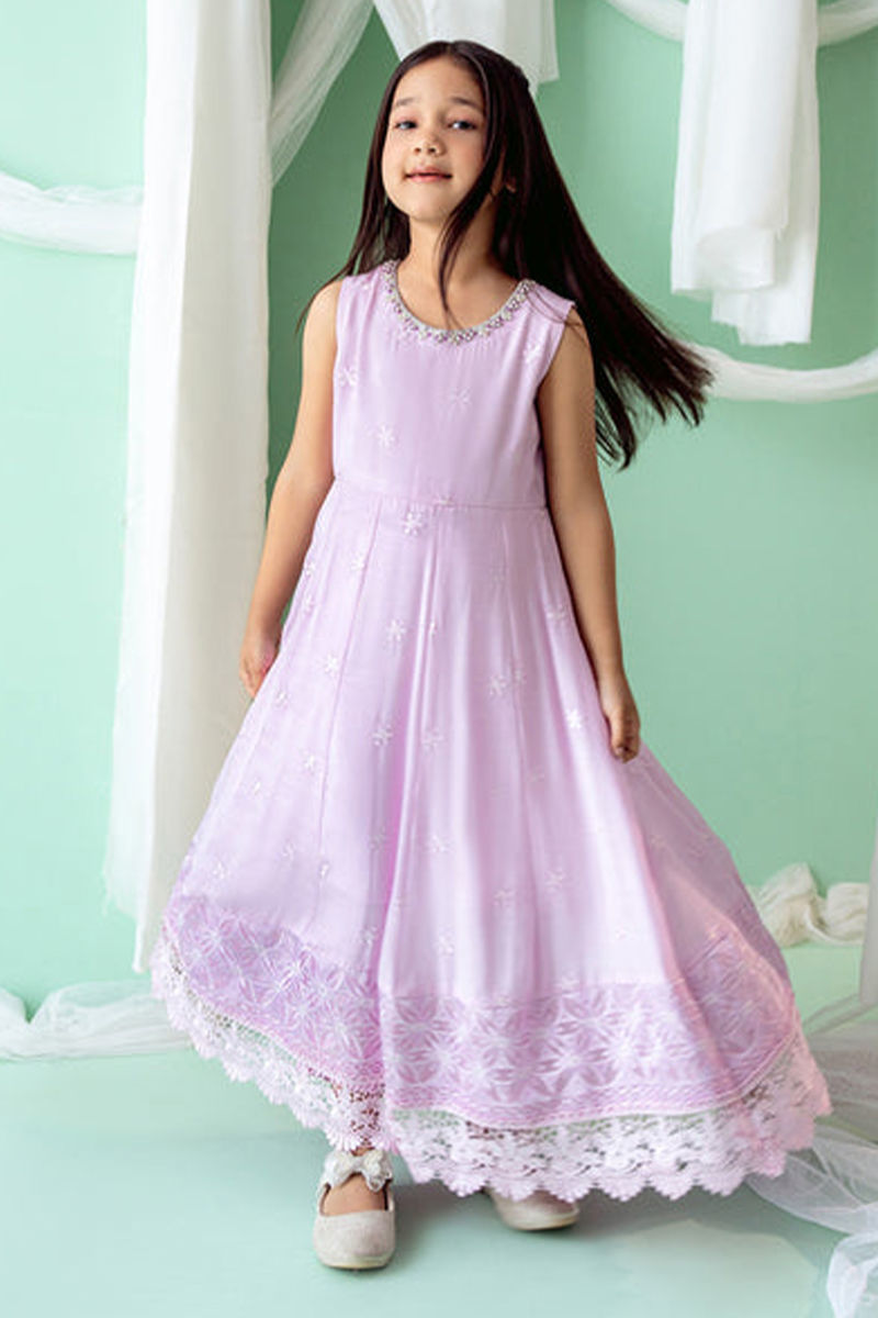 A regal kalidar crafted from in-house silk embroidered fabric, exuding luxury and craftsmanship. The fabric is rich and lustrous, showcasing intricate embroidery that adds depth and texture to the overall design. The neckline is beautifully hand-embroidered with delicate threadwork, adding a personalized touch of artistry and elegance to the piece. The hemline of the kalidar is meticulously surrounded with fine lace detailing, enhancing the garment’s sophisticated appeal and offering a seamless finish. The kalidar flows gracefully, with the classic cut and silhouette creating a flattering shape. The outfit is completed with silk pants, offering a perfect balance of comfort and style. Maximum shirt length: 36" , Model height : 3'9